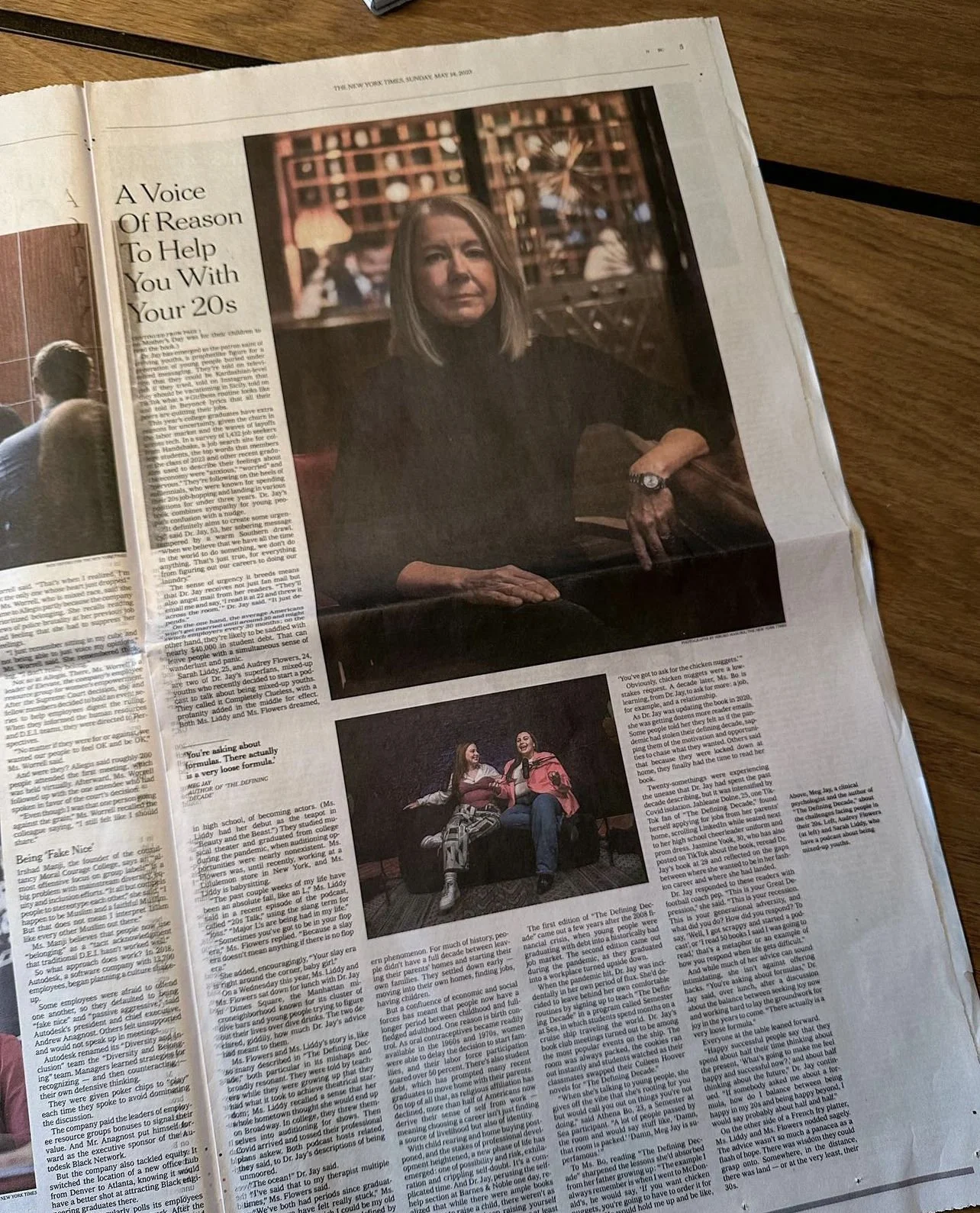 my sister and I ran to a 7/11 to find a physical copy! my podcast was featured in an NYT article!with meg jay about what it is to be in your 20s!the podcast is named “completely clueless,” and we share advice and failures, the highs and lows of post-grad!